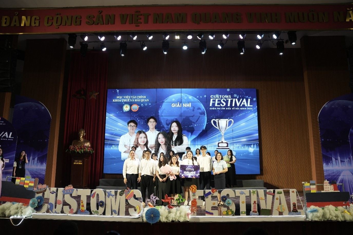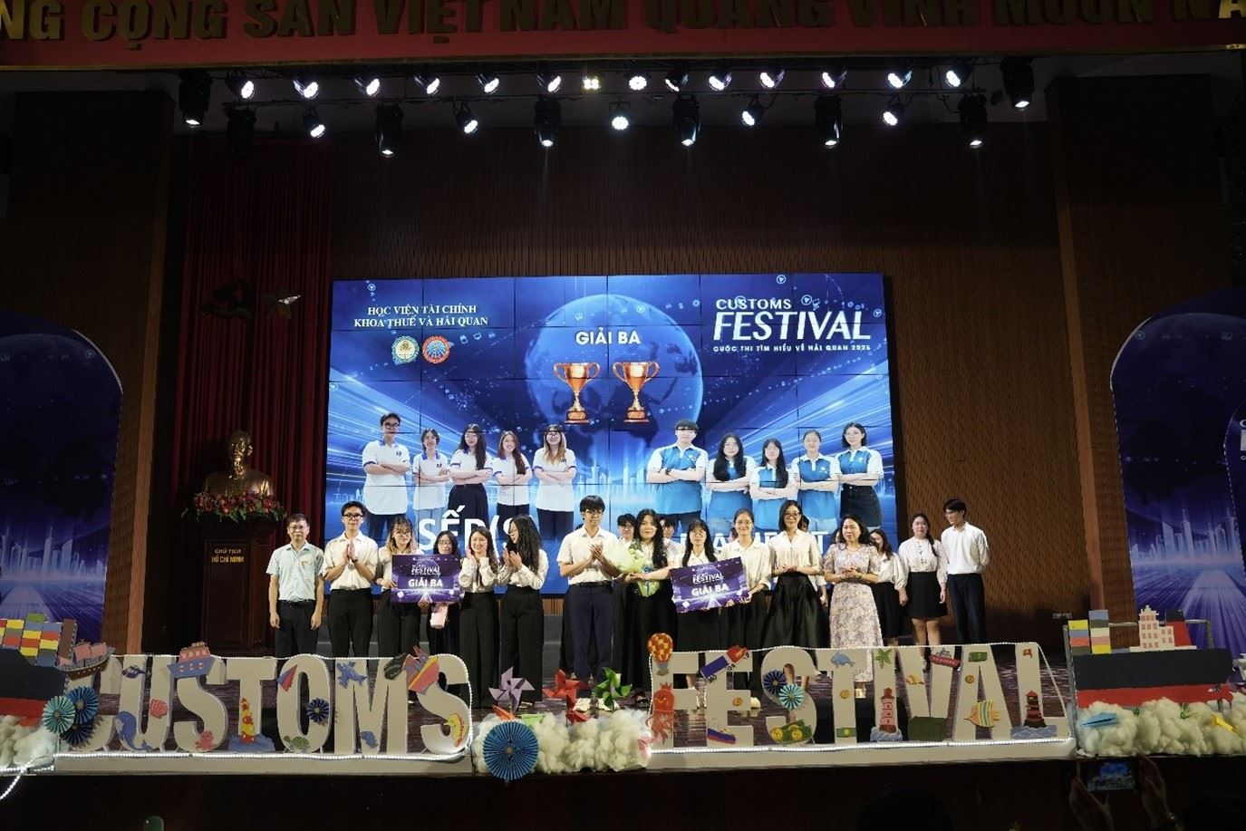 (ĐTN) - Là một sân chơi dành cho các bạn sinh viên đam mê và yêu thích với chuyên ngành hải quan, mỗi kỳ Festival Hải quan đều ghi được những dấu ấn riêng và để lại ấn tượng tốt đẹp cho các đội thi, các khán giả trong và ngoài Học viện. Tiếp nối thành công của các kỳ Festival Hải quan trước, vào hồi 18h00 ngày 16/05/2025, Khoa Thuế và Hải quan đã tổ chức vòng chung kết Festival Hải quan 2025 với mong muốn giúp các bạn sinh viên có được những trải nghiệm tuyệt vời nhất về chuyên ngành mà các bạn đang theo đuổi. Cuộc thi đã đem đến cho các bạn sinh viên một sân chơi học thuật đầy bổ ích, là dịp để các bạn không chỉ học hỏi, trau dồi kiến thức về lĩnh vực Hải quan, mà còn là cơ hội để các đội thi được tiếp cận với những nhà tuyển dụng lớn trong ngành Hải quan và Logistics.