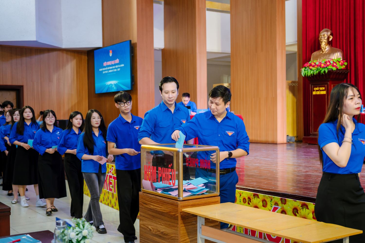 Trong khuôn khổ chương trình, Hội nghị đã tiến hành bầu cử đại biểu tham dự Đại hội Đại biểu Đoàn TNCS Hồ Chí Minh Thành phố Hà Nội lần thứ XVII, nhiệm kỳ 2025 - 2030. Kết quả, Hội nghị thống nhất danh sách gồm 03 đại biểu chính thức và 01 đại biểu dự khuyết. Riêng Đ/c. TS. Tạ Đình Hoà - Bí thư Đoàn Học viện Tài chính là đại biểu đương nhiên tham dự Đại hội Đại biểu Đoàn TNCS Hồ Chí Minh Thành phố Hà Nội lần thứ XVII, nhiệm kỳ 2025 - 2030. Như vậy, đoàn đại biểu Đoàn Thanh niên Học viện Tài chính sẽ gồm 04 đồng chí đại biểu chính thức, 01 đại biểu dự khuyết sau: