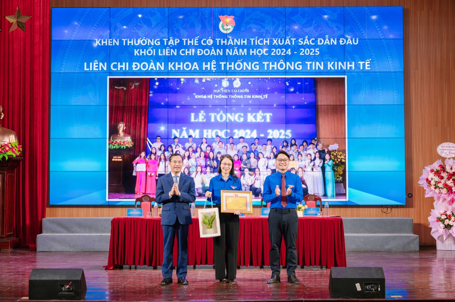 Ban Chấp hành Đoàn Học viện cũng đã trao Giấy khen và phần thưởng cho các tập thể, cá nhân có thành tích xuất sắc trong công tác Đoàn và phong trào thanh niên năm học 2024 - 2025. Các tập thể được khen thưởng đều là những đơn vị thể hiện tinh thần trách nhiệm, nhiệt huyết và sáng tạo trong việc triển khai các phong trào hành động cách mạng của thanh niên; tích cực thực hiện các chỉ tiêu, nhiệm vụ do Ban Chấp hành Đoàn Học viện đề ra; đồng thời lan tỏa hình ảnh sinh viên Học viện Tài chính năng động, tri thức và đầy khát vọng cống hiến.