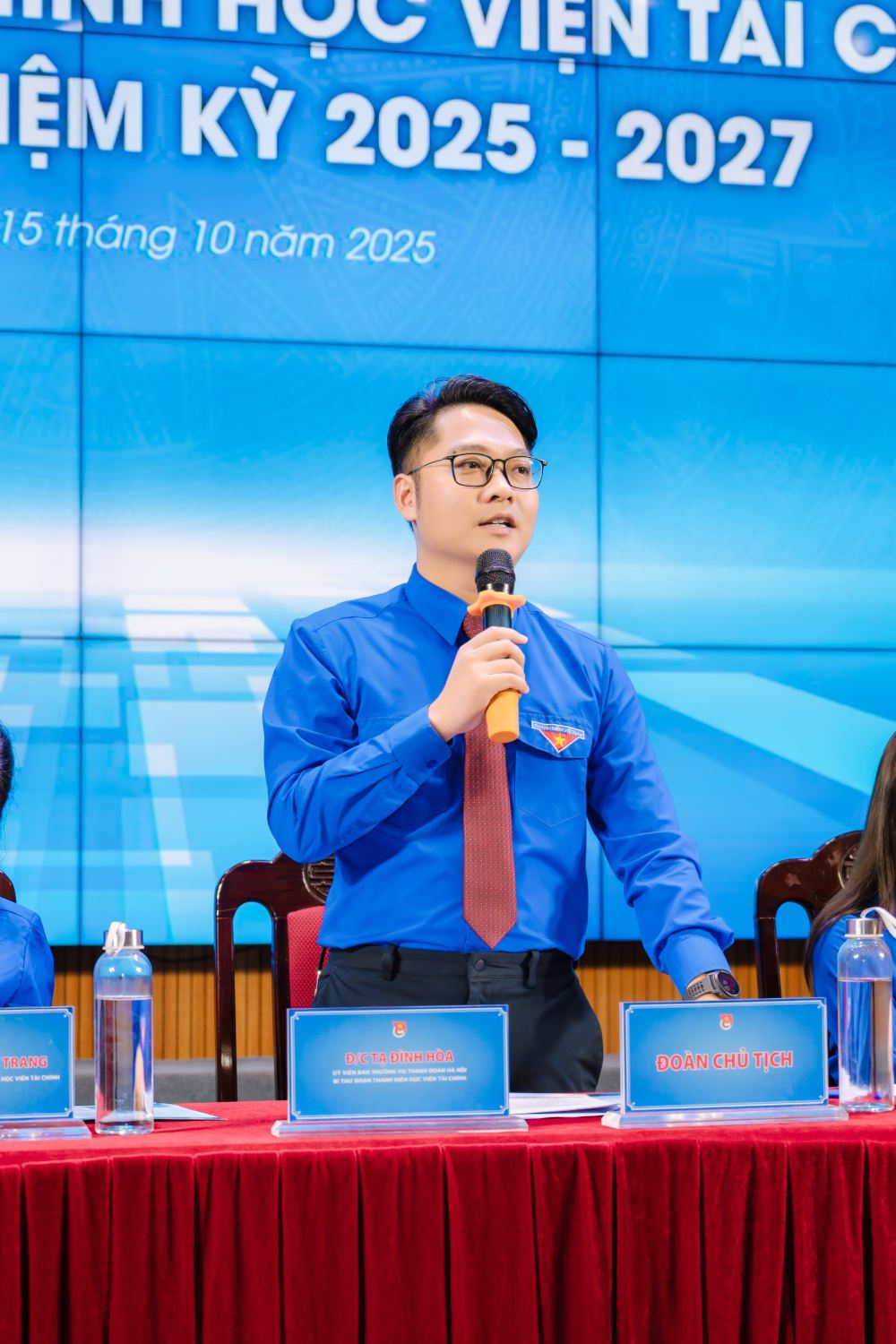 (1) Đ/c. TS. Tạ Đình Hoà - Uỷ viên Ban Thường vụ Thành đoàn, Đảng uỷ viên, Bí thư Đoàn TN Học viện Tài chính
