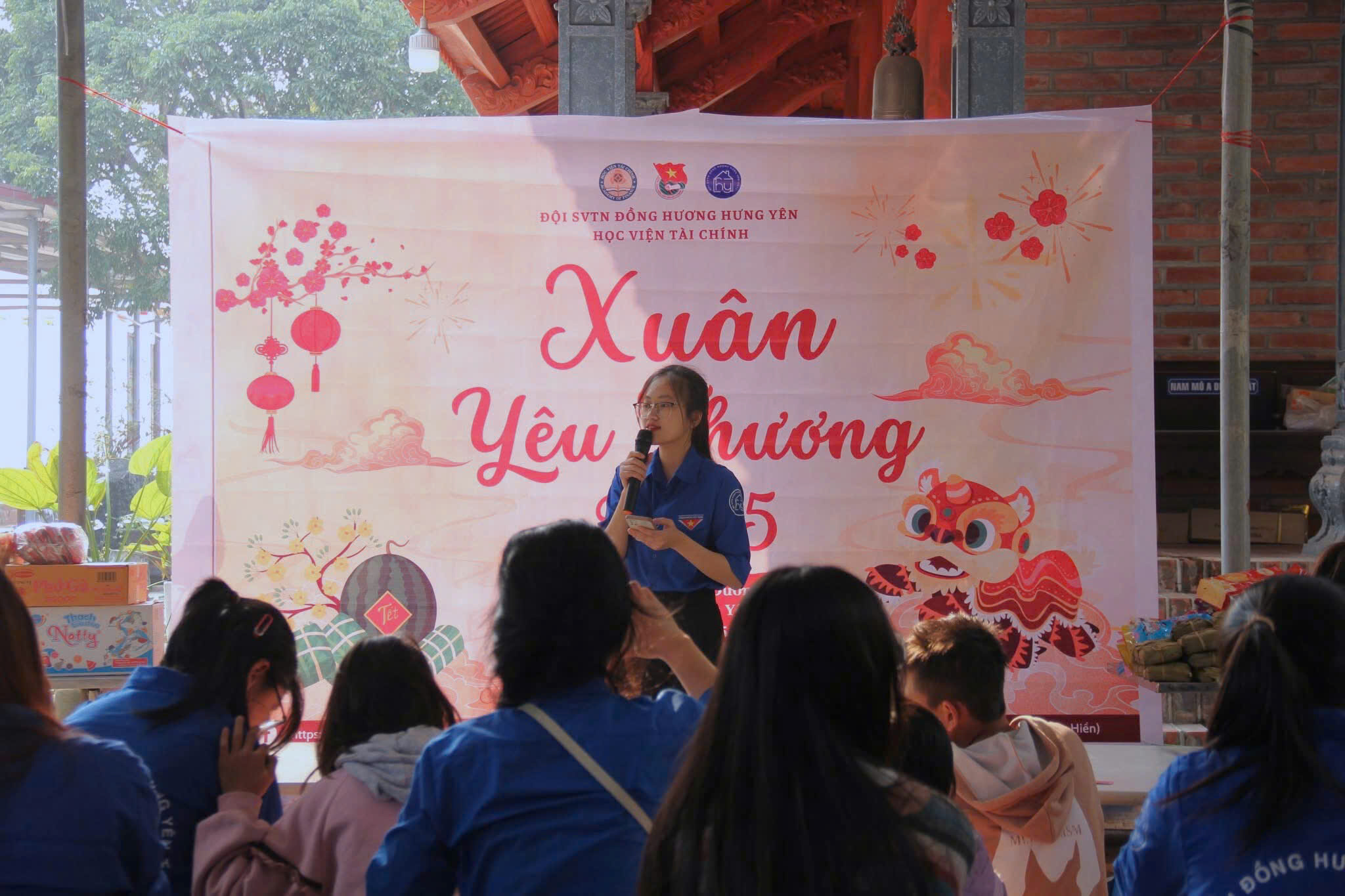12/01/2025, Đội SVTN Đồng hương Hưng Yên HVTC tổ chức " Xuân yêu thương 2025" với hoạt động gói bánh chưng và tặng các suất quà, nhu yếu phẩm cho 32 em nhỏ mồ côi ở chùa Thiên Hương