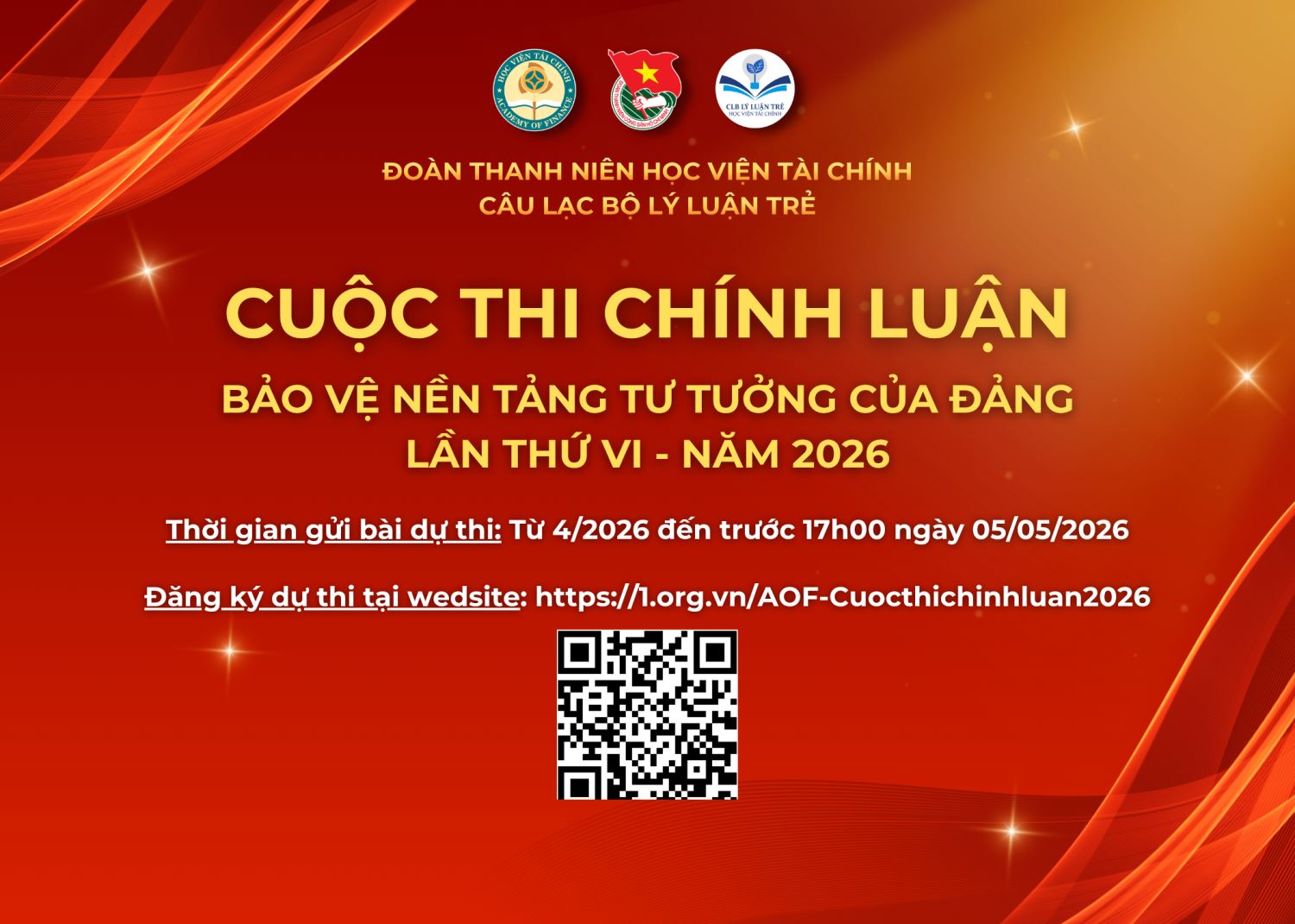 - Các cá nhân, đơn vị trực thuộc nộp bài về Đoàn TN Học viện trước 17h00 ngày 05/05/2026 qua link https://1.org.vn/AOF-Cuoc-thi-chinh-luan-2026.