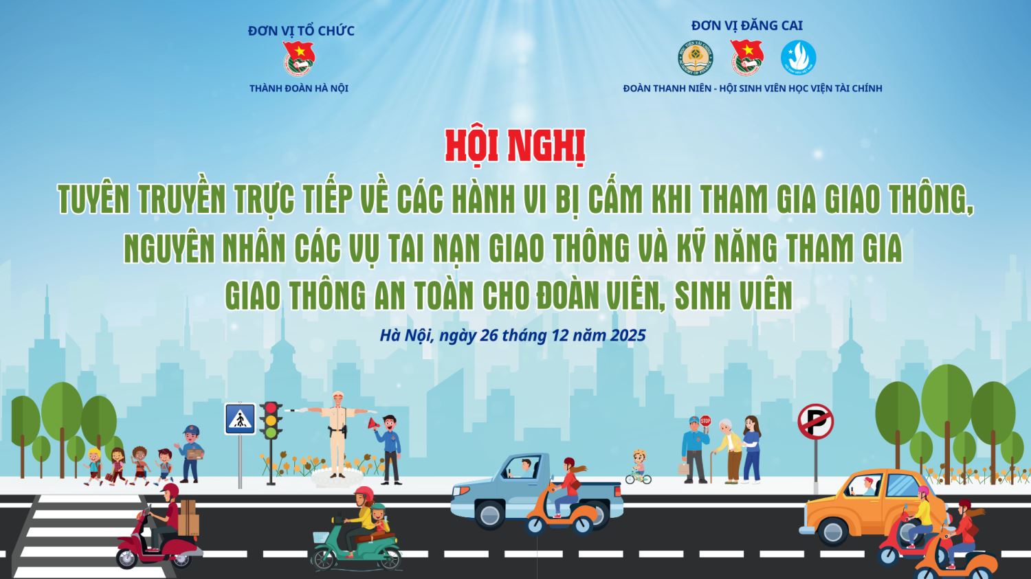 HỘI NGHỊ: TUYÊN TRUYỀN TRỰC TIẾP VỀ CÁC HÀNH VI BỊ CẤM KHI THAM GIA GIAO THÔNG, NGUYÊN NHÂN CÁC VỤ TAI NẠN GIAO THÔNG VÀ KỸ NĂNG THAM GIA GIAO THÔNG AN TOÀN CHO ĐOÀN VIÊN, SINH VIÊN