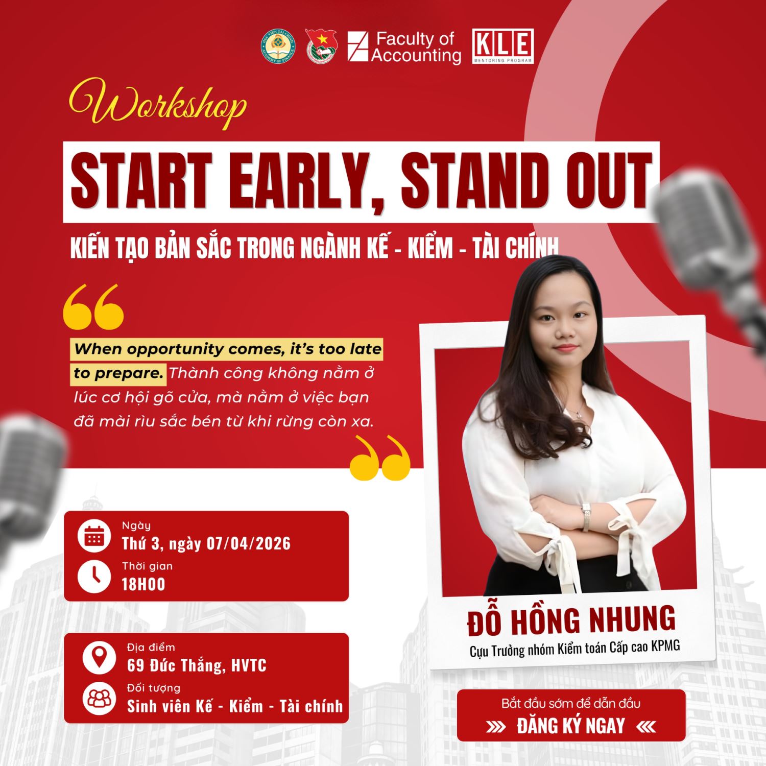 Workshop “START EARLY, STAND OUT: Kiến Tạo Bản Sắc Trong Ngành Kế - Kiểm - Tài Chính” Chính Thức Mở Đơn