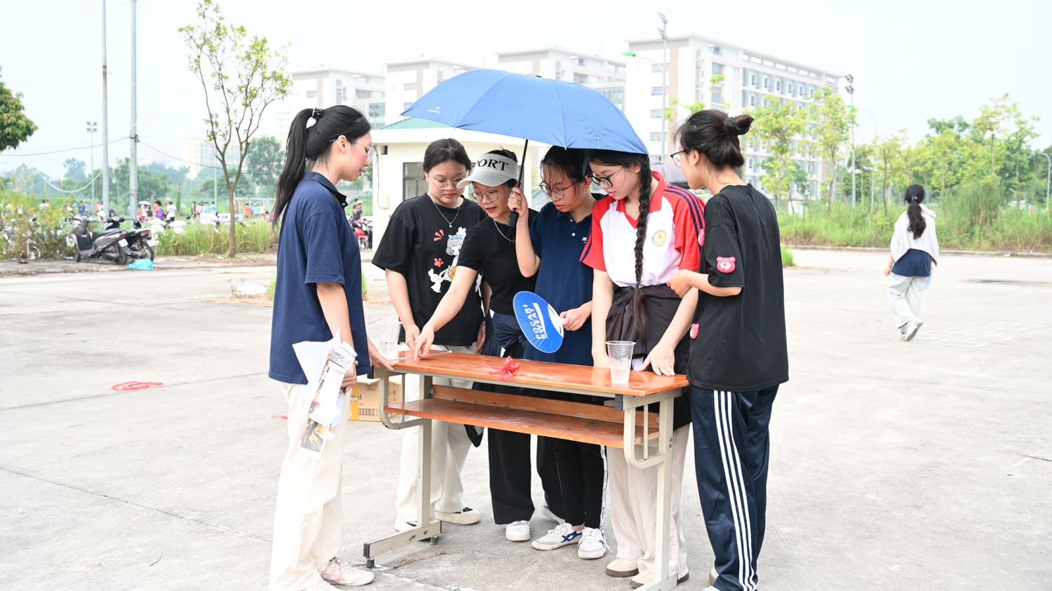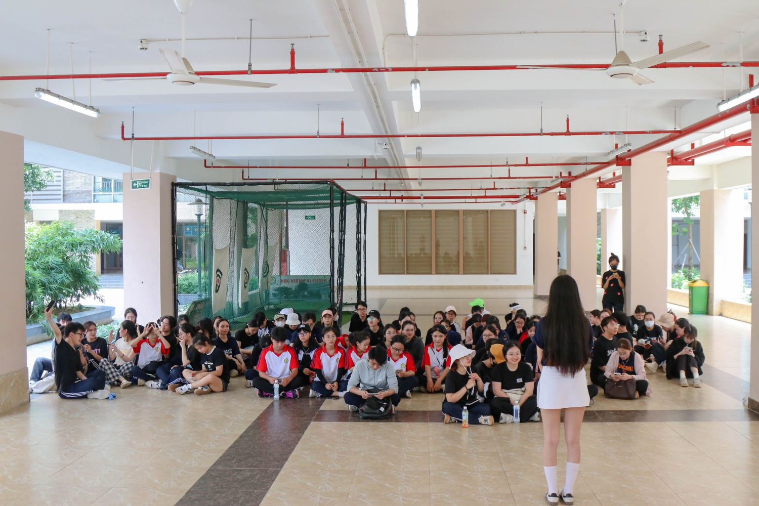 Gương mặt rạng rỡ của các bạn sinh viên khi ngồi nghỉ - những nụ cười tươi sau giờ thi đấu đầy năng lượng